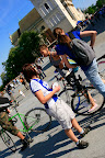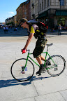 Alleycat bicyclegirls. Stoimy na punkcie pod kolumną Zygmunta i rozdajemy płytki. Później impreza w Śnie Pszczoły na Inżynierskiej.