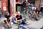 Alleycat bicyclegirls. Stoimy na punkcie pod kolumną Zygmunta i rozdajemy płytki. Później impreza w Śnie Pszczoły na Inżynierskiej.