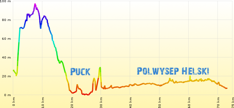 Do samego Pucka dojechaliśmy już asfaltem. W mieście niczego ciekawego nie znaleźliśmy. Ścieżką nad morzem dojechaliśmy do Władysławowa - niezły sajgon. Właściwie to na znacznej części ścieżki na Helu jest podobnie - mnóstwo ludzi w okolicach miejscowości turystycznych i kempingów. Na szczęście im dalej tym lepiej i ludzi mniej. Nawierzchnia przeróżna - dominuje kostka betonowa, ale są też płyty, asfalt i szutr.
